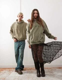 Reclaimed Vintage Unisex Oversized Hoodie In Green Overdye For Men Khaki