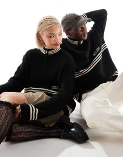 Reclaimed Vintage Unisex Knitted Jumper In Black Acid Wash With Stripe Detail For Unisex