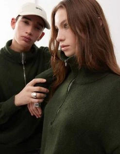 Reclaimed Vintage Unisex Quarter Zip Jumper In Green For Unisex