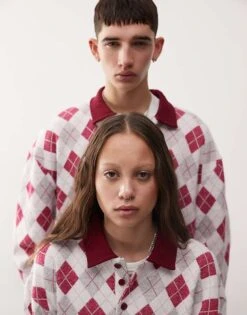Reclaimed Vintage Unisex Knitted Top With Red Stripe For Unisex Grey