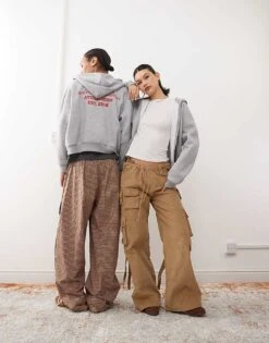 Reclaimed Vintage Unisex Zip Through Hoodie In Grey Marl For Unisex
