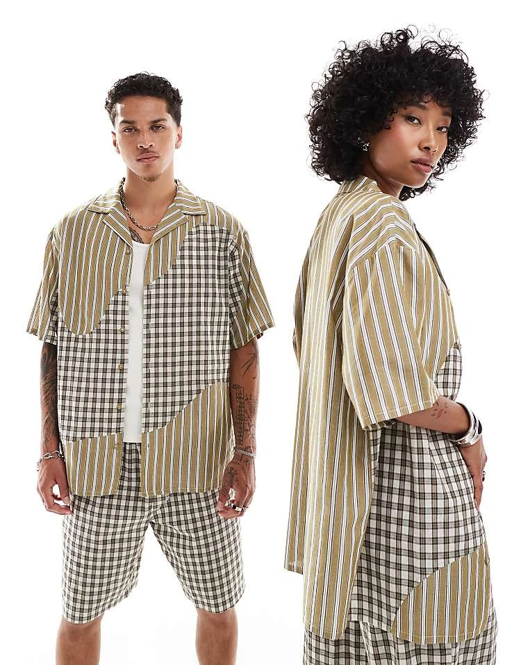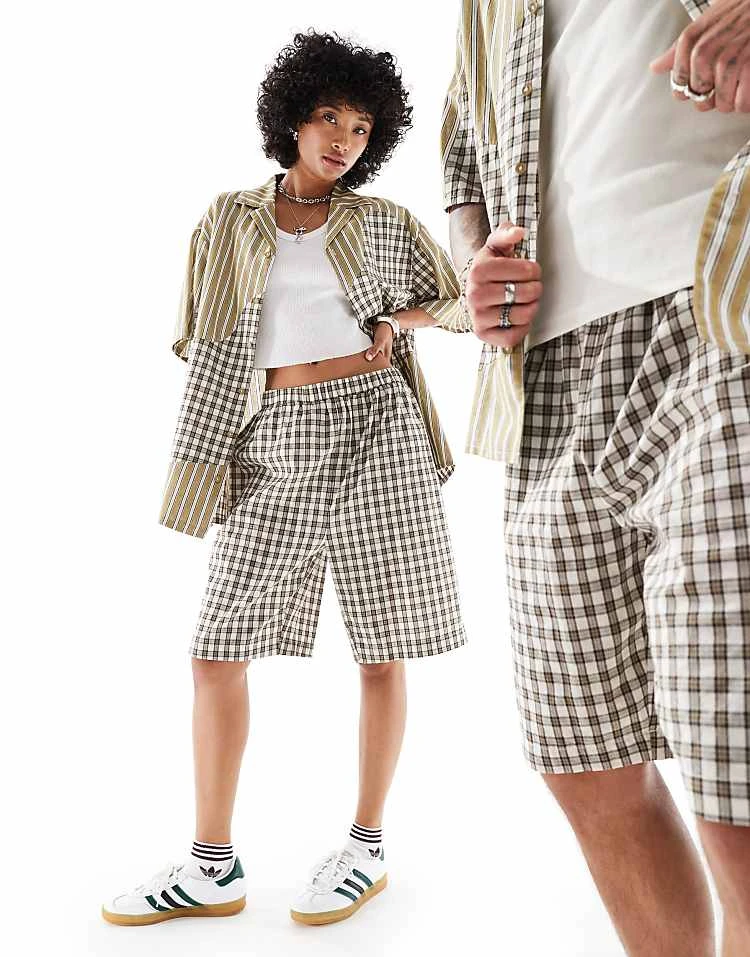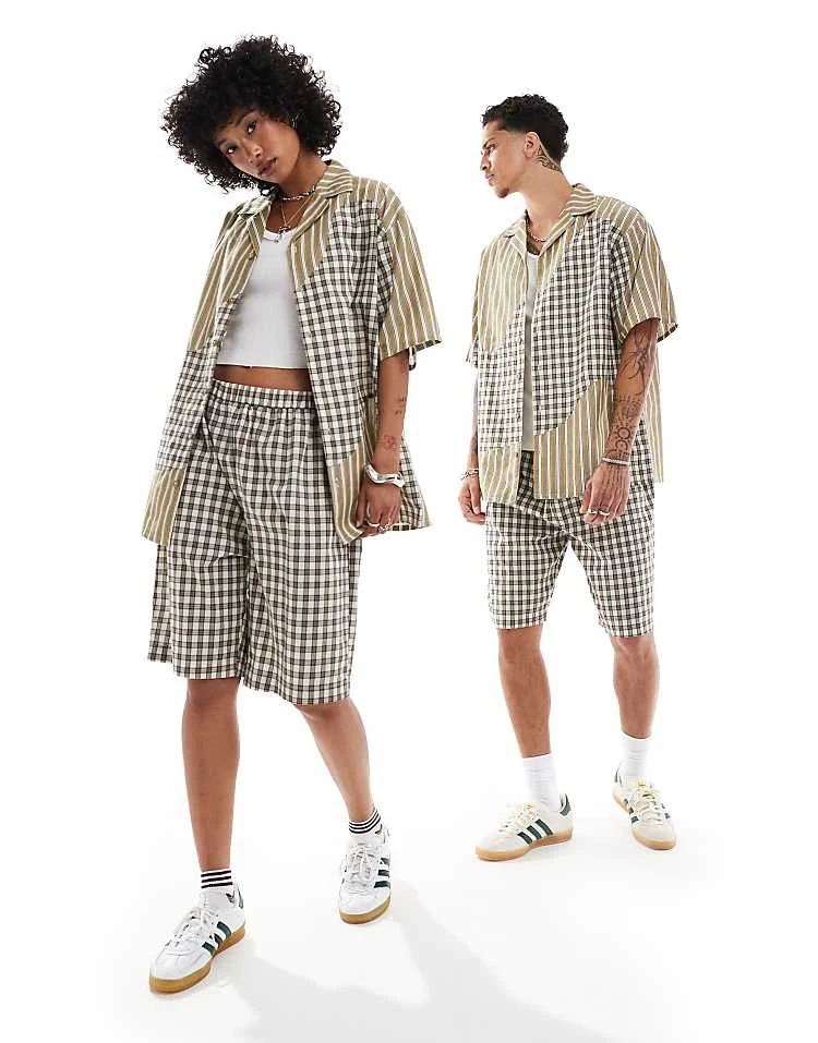 Reclaimed Vintage Unisex Boxy Co-ord In Splice Check And Stripe