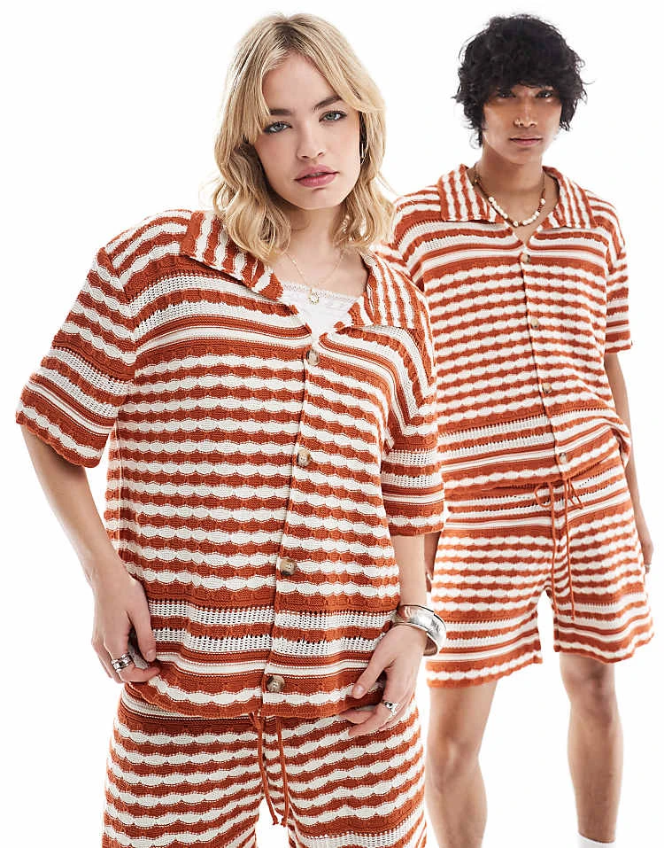 Reclaimed Vintage Unisex Knitted Co-ord In Stripe Crochet
