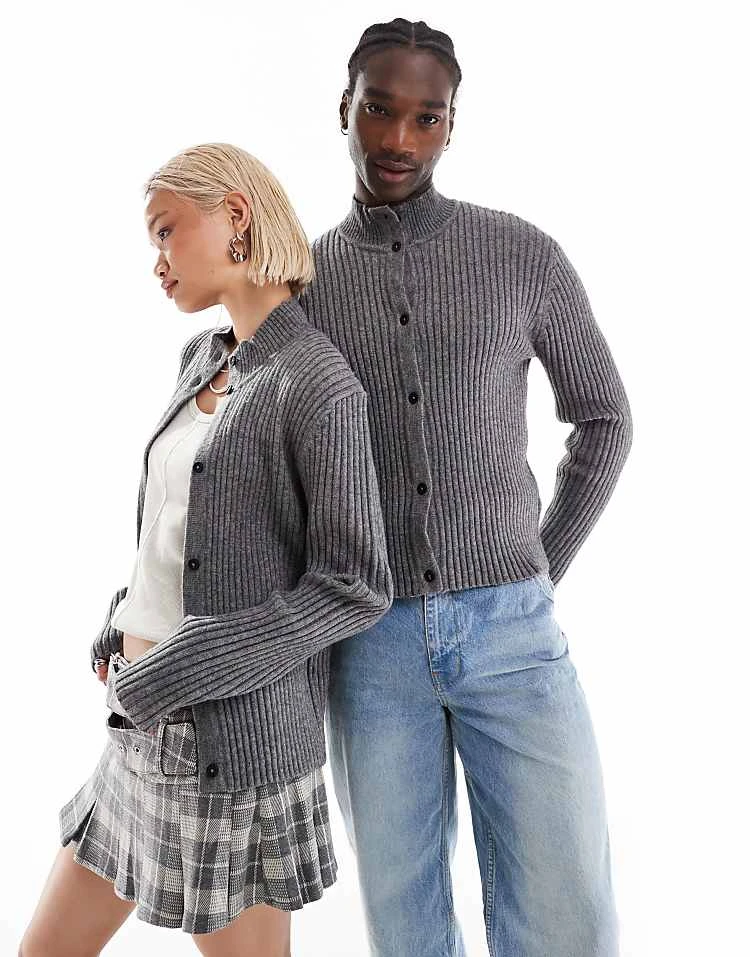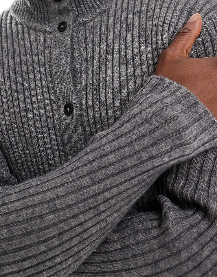 Reclaimed Vintage Unisex Ribbed Knit High Neck Buttoned Jumper For Unisex Grey