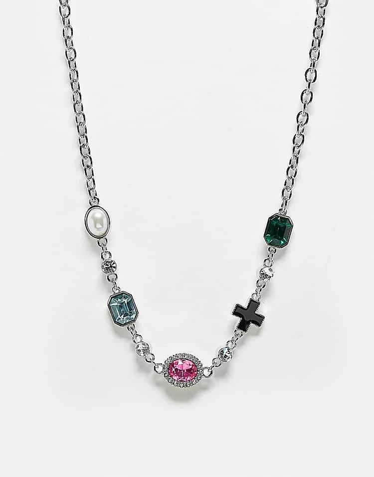 Reclaimed Vintage Unisex Set With Colourful Stones In Silver